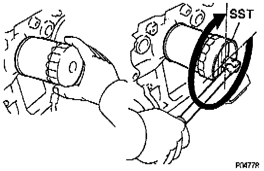 (a) Using Special Service Tool (SST) Oil Filter Wrench # 09228 - 07501 or equivalent, remove the oil filter.