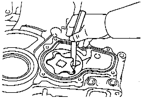 Using a thickness gauge, measure the clearance between the drive and driven rotor tips.