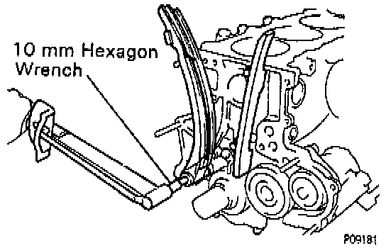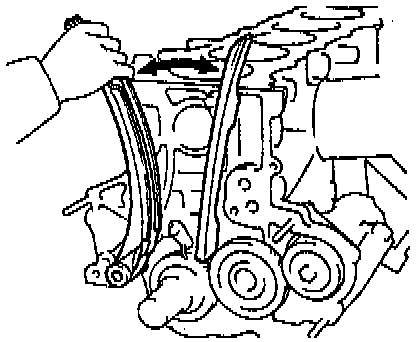 (c) Tie the timing chain with a cord as shown in the illustration and make sure it doesn't come loose.
