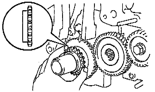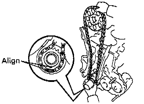 CAUTION: However, for the installation of the camshaft timing gear and timing chain follow the below procedure. Align the blight link of the timing chain and camshaft timing gear mark, and install them to the camshaft.