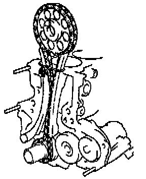 (b) Install the timing chain on the crankshaft timing gear with the other bright link aligned with the timing mark on the crankshaft timing gear.
