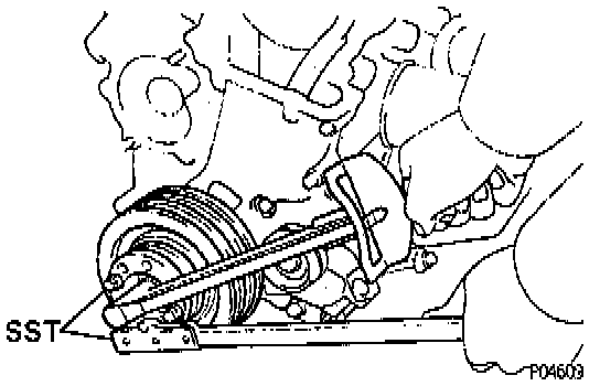 (b) Using SST Crankshaft Pulley Holding Tool # 09213 - 58012, and Companion Flange Holding Tool # 09330 - 00021 or equivalents, install and torque the pulley bolt.