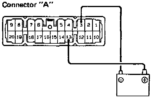 c. Connect the positive (+) lead from the battery to terminal A-13 and check that the indicator dims.