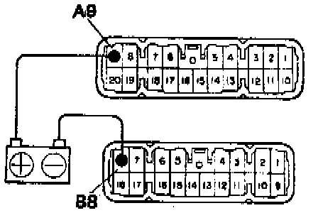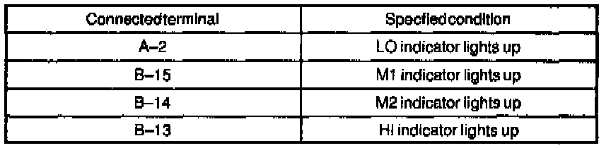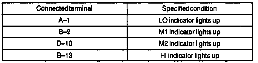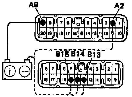 a. Connect the positive (+) lead from the battery to terminal a A-9 and the negative (-) lead to terminal 13-8 and then check that the indicator lights up.