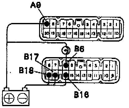 a. Connect the positive (+) lead from the battery to terminal A-9 and the negative (-) lead to terminal B-16.
