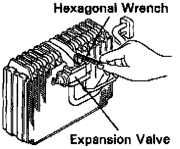 Using a hexagon wrench remove the 2 bolts and separate the expansion valve and evaporator.