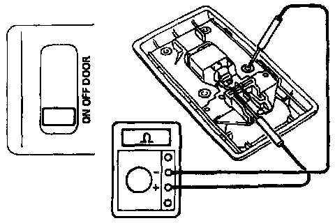 c. Turn the room light switch DOOR, and check that there is continuity between terminal 1 and 2.