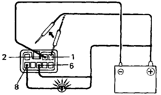 a. Connect the 3-4 W test bulb between terminal 8 and the positive (+) lead from the battery.