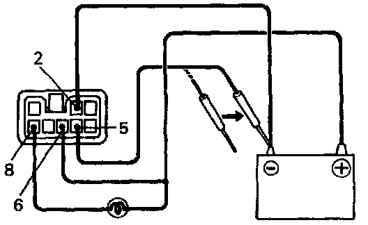 d. Connect the negative (-) lead to terminal 5, and check that the test bulb goes out.