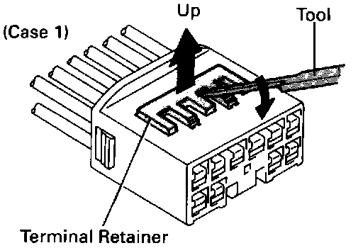 Insert the special tool into the terminal retainer access hole and pull the terminal retainer up to the temporary lock position.