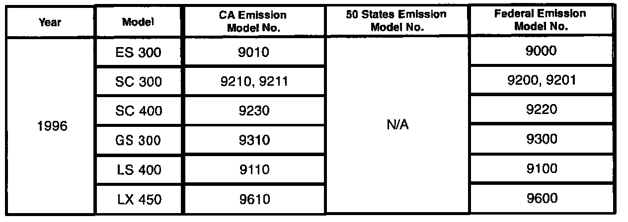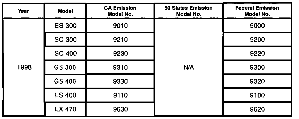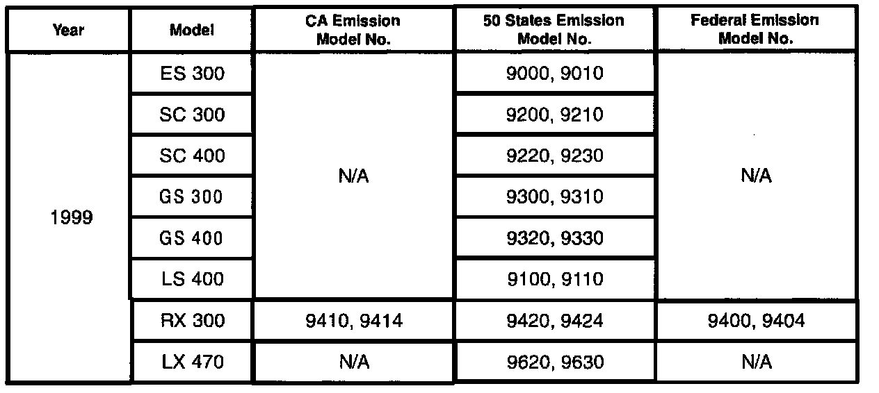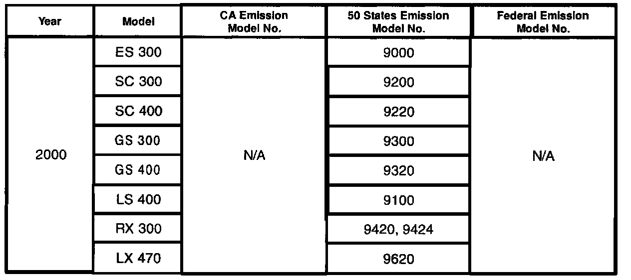 We have included a table showing 1995 - 2000 U.S. model numbers and their exhaust emissions certifications. Please continue to consult the Electronic Parts Catalog (EPC) or the parts microfiche for emission label parts numbers.