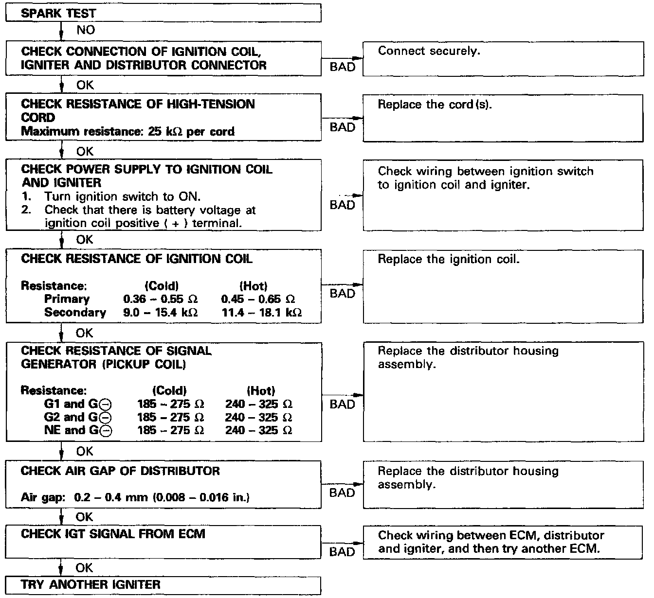 (a) Disconnect the high-tension cords (from the ignition coil) from the distributor cap.