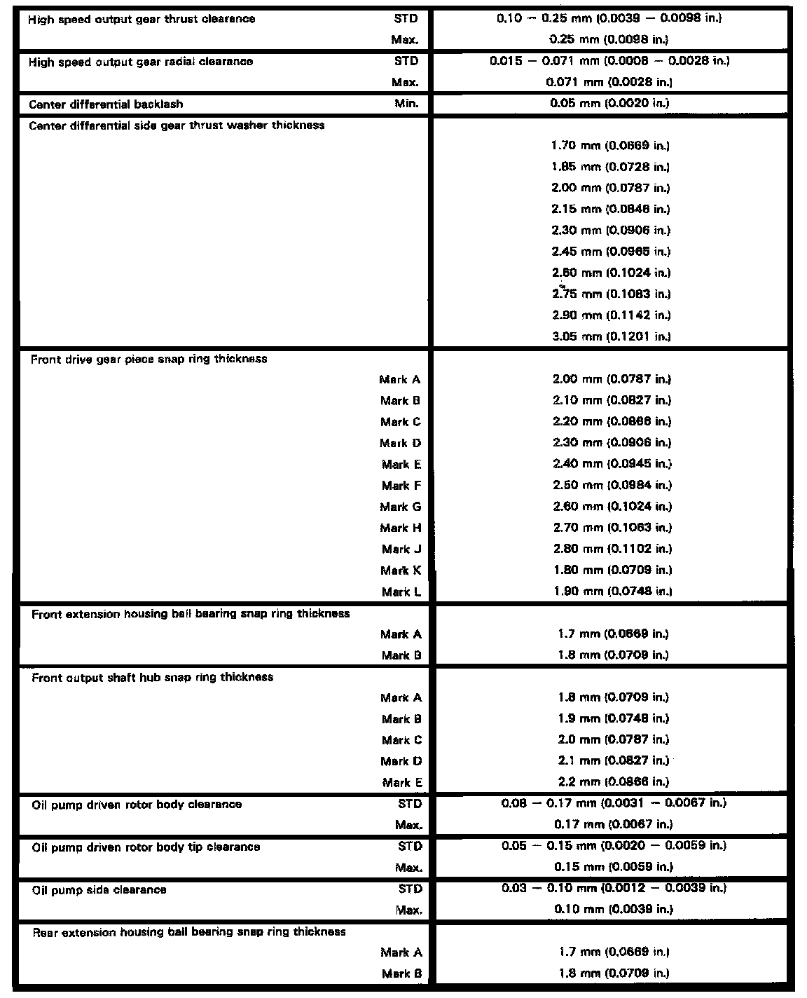 Four Wheel Drive, Transfer Case Backlash / Thickness:
