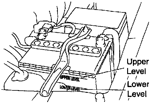 If under the lower level, replace the battery (or add distilled water if possible). Check the charging system.
