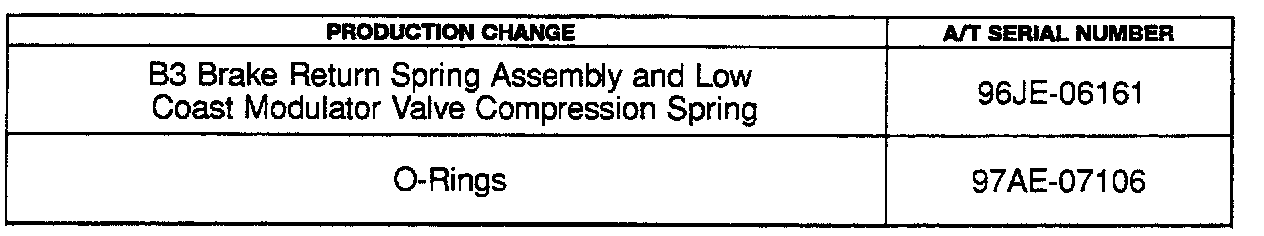 The B3 Brake Return Spring B3 Brake Piston Rings and Low Coast Modulator Spring have been changed to improve "'Park to Reverse" or "Neutral to Reverse" shift operation.