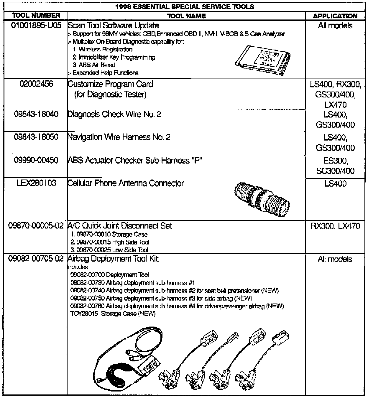 1998 Available Special Service Tools