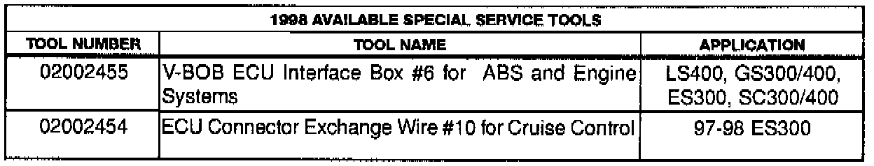 1998 SPECIAL SERVICE TOOLS