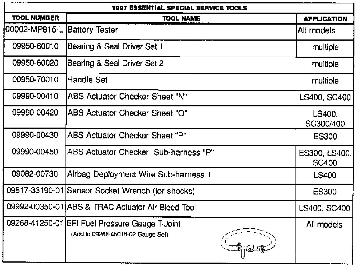1997 Available Special Service Tools