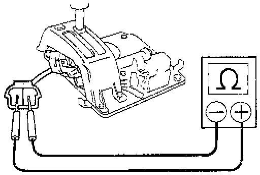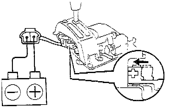 c. Apply battery positive voltage between terminals. Check that operation noise can be heard from the solenoid. If the solenoid does not operated, replace the solenoid.
