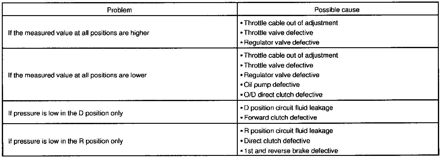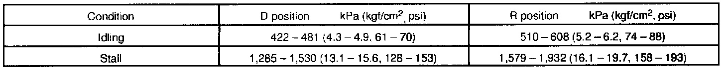 (g) Press the accelerator pedal all the way down. Quickly read the highest line pressure when engine speed reaches stall speed.