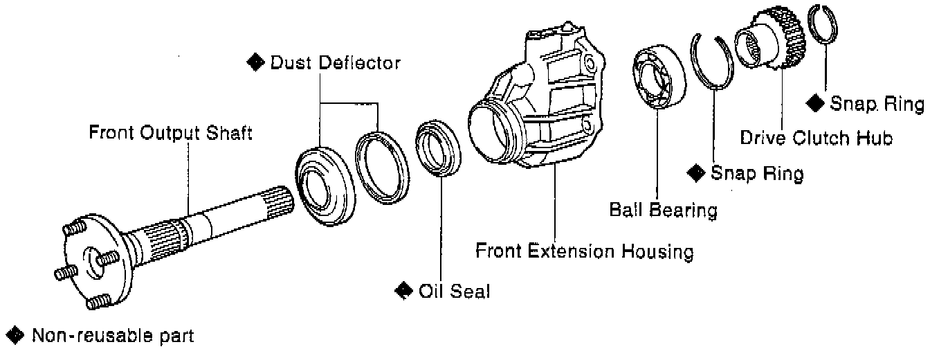 2. Remove front output shaft. Using a plastic hammer, drive out the front output shaft.