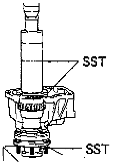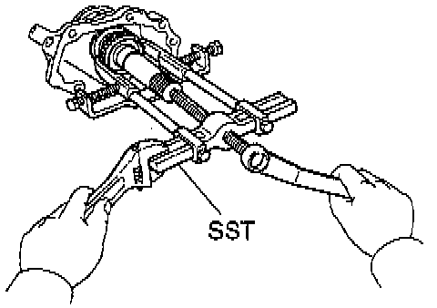 b. Using SST 09316-60011 (09316-00011, 09316-00071) or equivalents, and a press, remove the ball bearing.