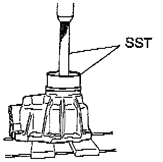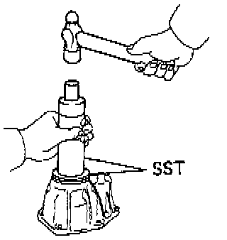 3. Install oil seal. Using SST 09316-60011 (09316-00011, 09316-00061) or equivalents, and a hammer, drive in a new oil seal to the front extension housing.