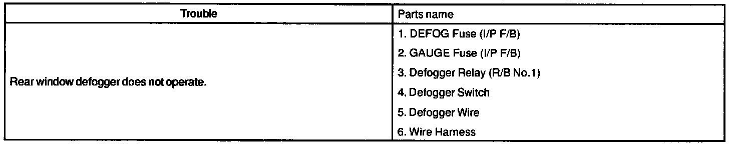 The table above will be useful for you in troubleshooting these electrical problems. The most likely causes of the malfunction are shown in the order of their probability. Inspect each part in the order shown, and replace the part when it is found to be faulty.
