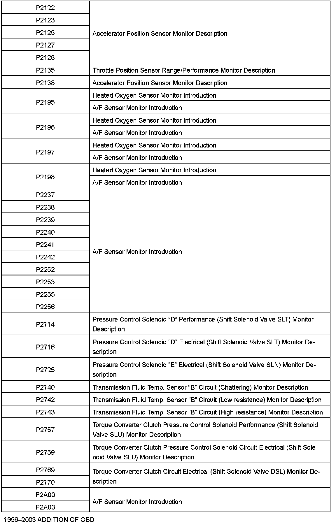Diagnostic Trouble Code Descriptions