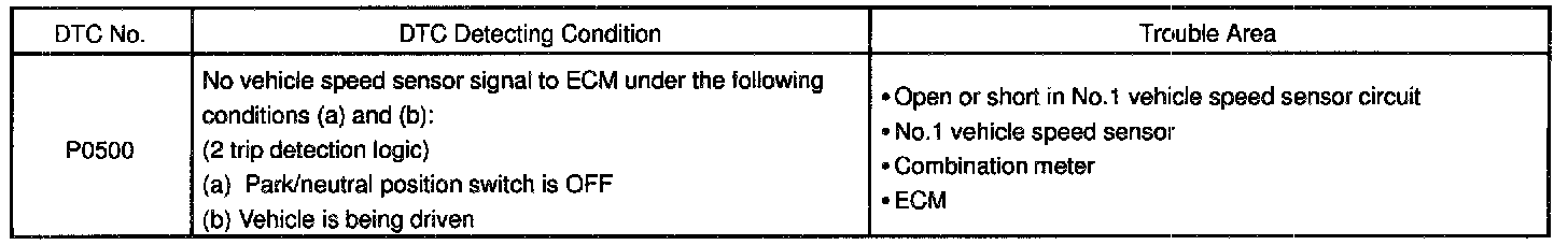 DTC P0500 Vehicle Speed Sensor Malfunction