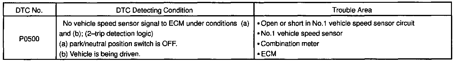 DTC P0500 Vehicle Speed Sensor Malfunction (No.1 Vehicle Speed Sensor)