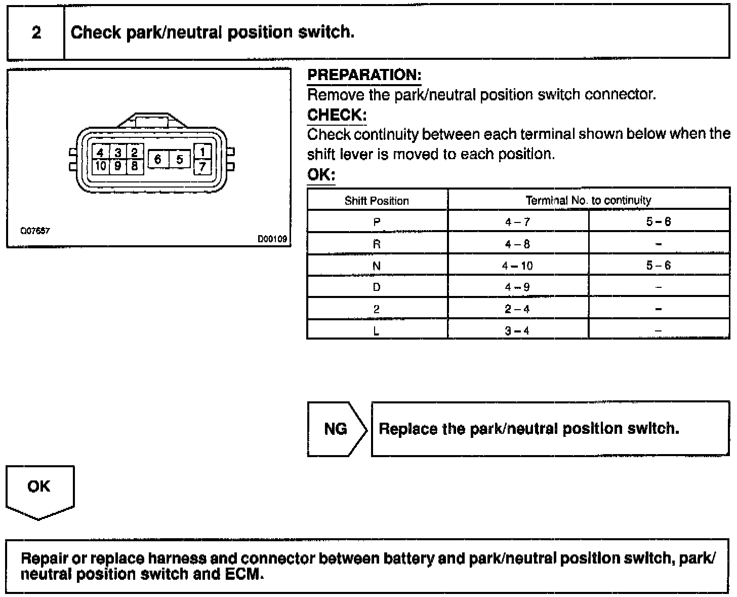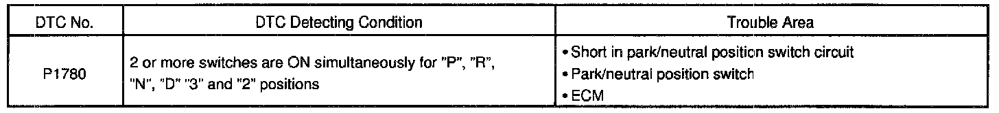 DTC P1780 Park/Neutral Position Switch Malfunction
