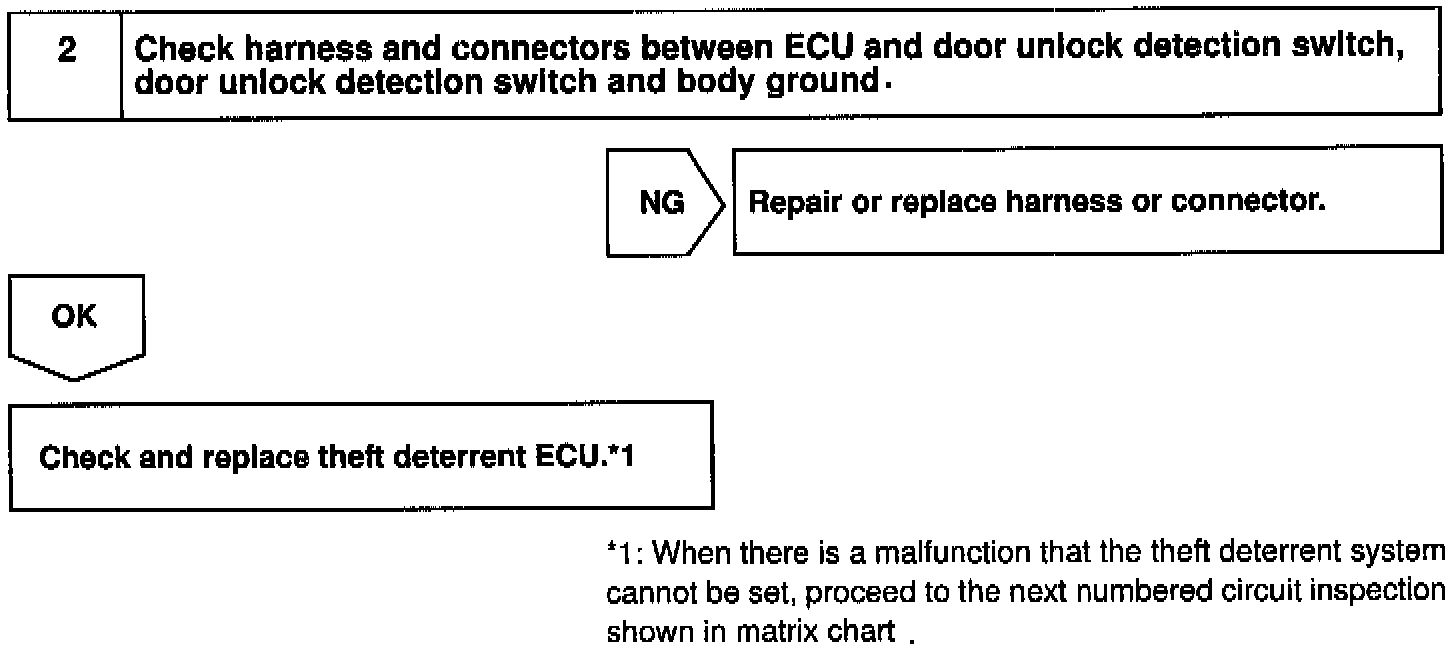The door unlock detection switch is built in the door lock motor assembly. This switch is ON when the door lock knob is in the unlock position and OFF when the lock knob is in the lock position. The ECU detects the door lock knob conditions from this circuit. It is used as one of the operating conditions for the key confinement prevention function.