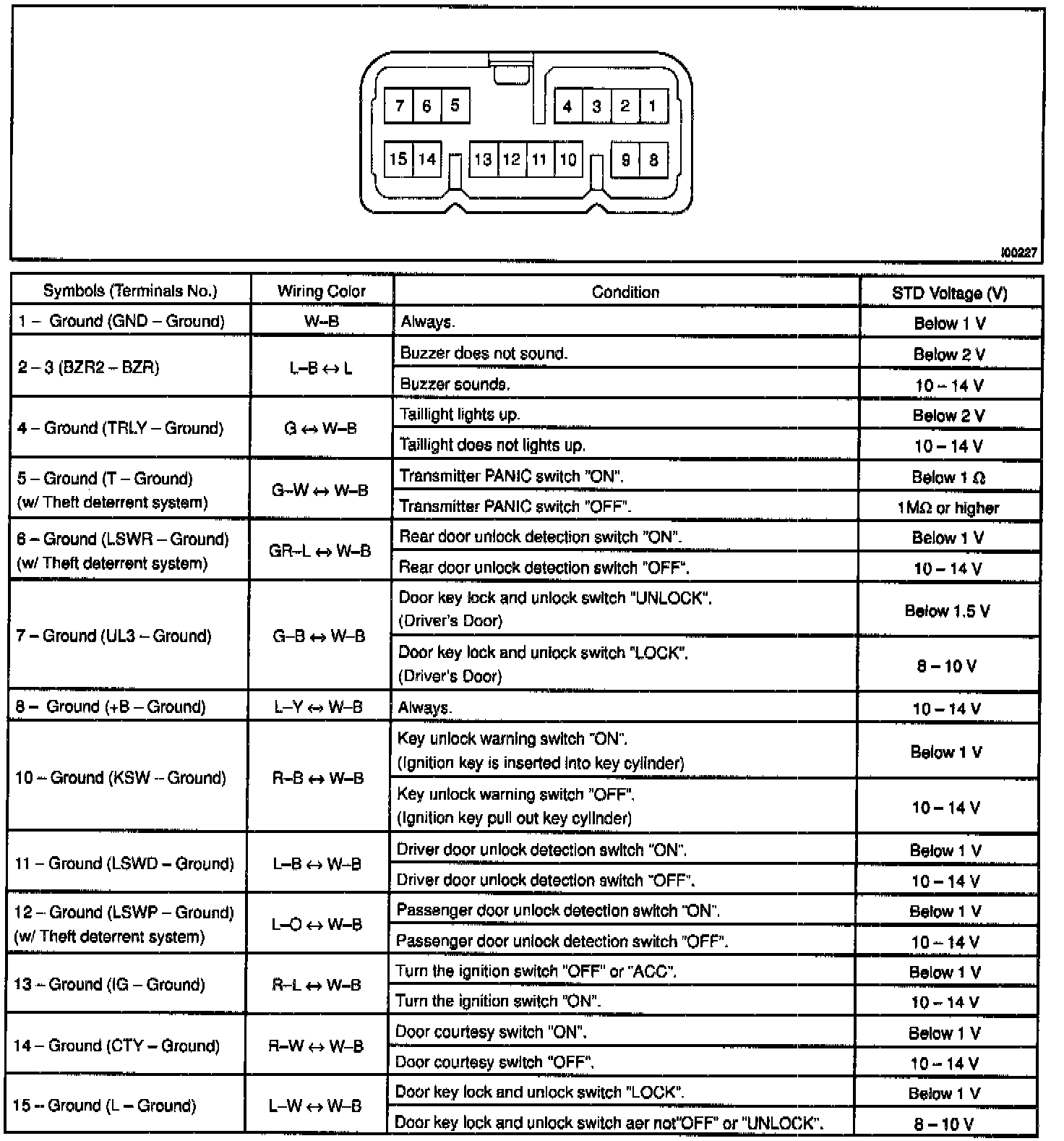 Pinout Values and Diagnostic Parameters