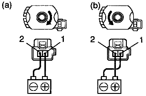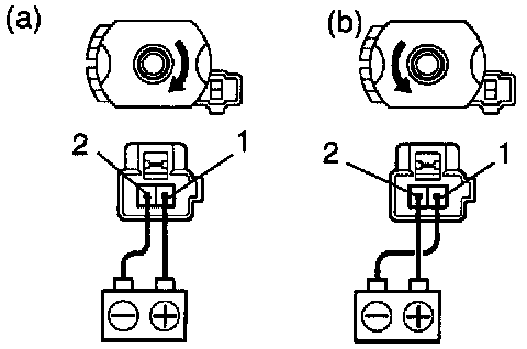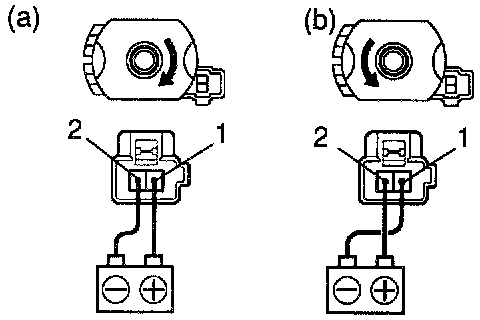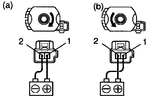 a. Connect the positive (+) lead from the battery to terminal 1 and the negative (-) lead to terminal 2, check that the motor turns clockwise.