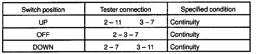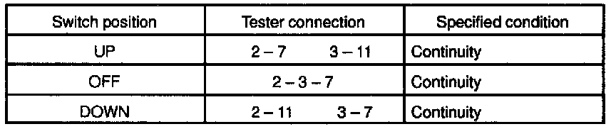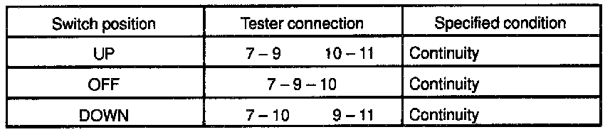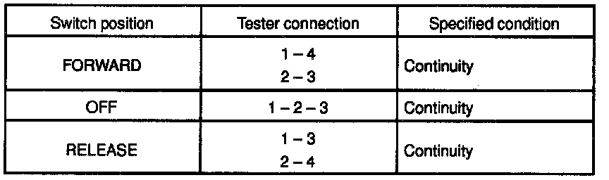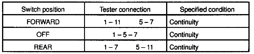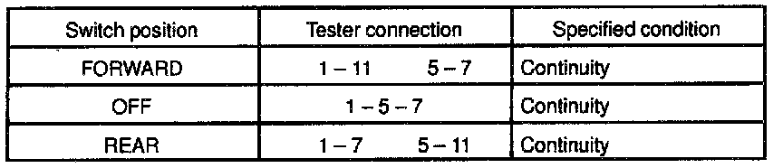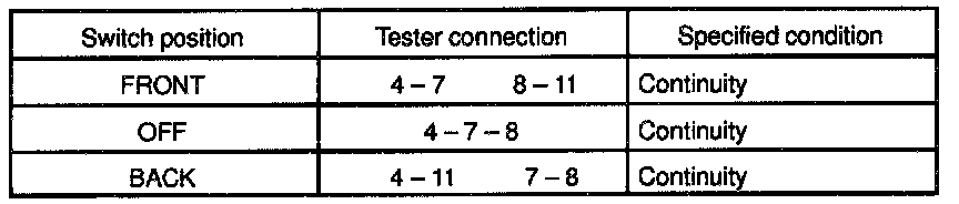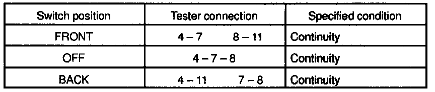 If continuity is not as specified, replace the switch.