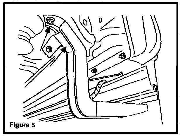 4. Remove the front bracket using a 13 mm socket (2 places). (Figure 5) On the passenger side, the air conditioning line shroud must be removed first, using a 10 mm socket. (Figure 6)