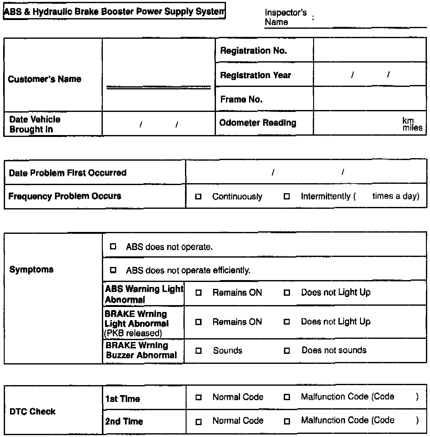 Customer Problem Analysis Check Sheet