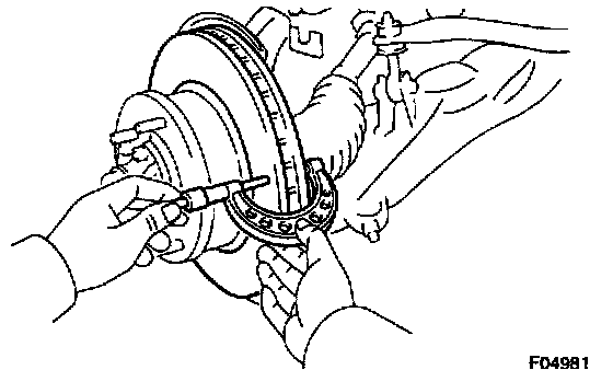 - If the bearing play and axle hub runout are not abnormal, replace the disc or grind it on an "On-Car brake lathe".