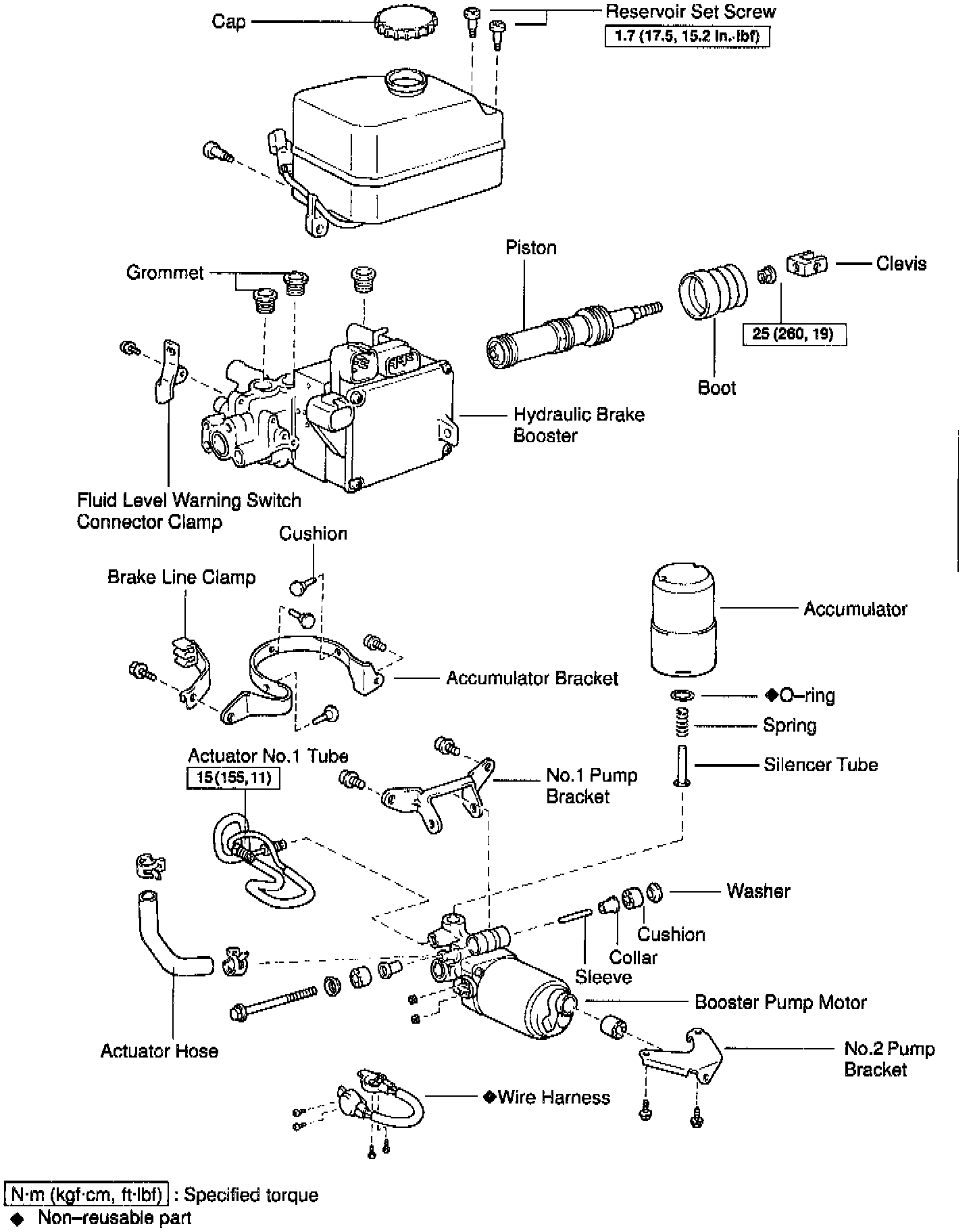 b. Remove the 4 screws and wire harness from the booster and pump.