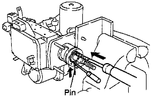 NOTICE: If pulled out and installed at an angle, there is a possibility that the cylinder bore could be damaged. At the time of reassembly, be careful not to damage the rubber lips on the pistons.