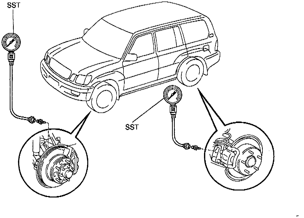 ON-VEHICLE INSPECTION1. Install Load Sensing Proportioning Valve (LSPV) gauge Special Service Tool (SST) 09709-29018 or equivalent, and bleed air.