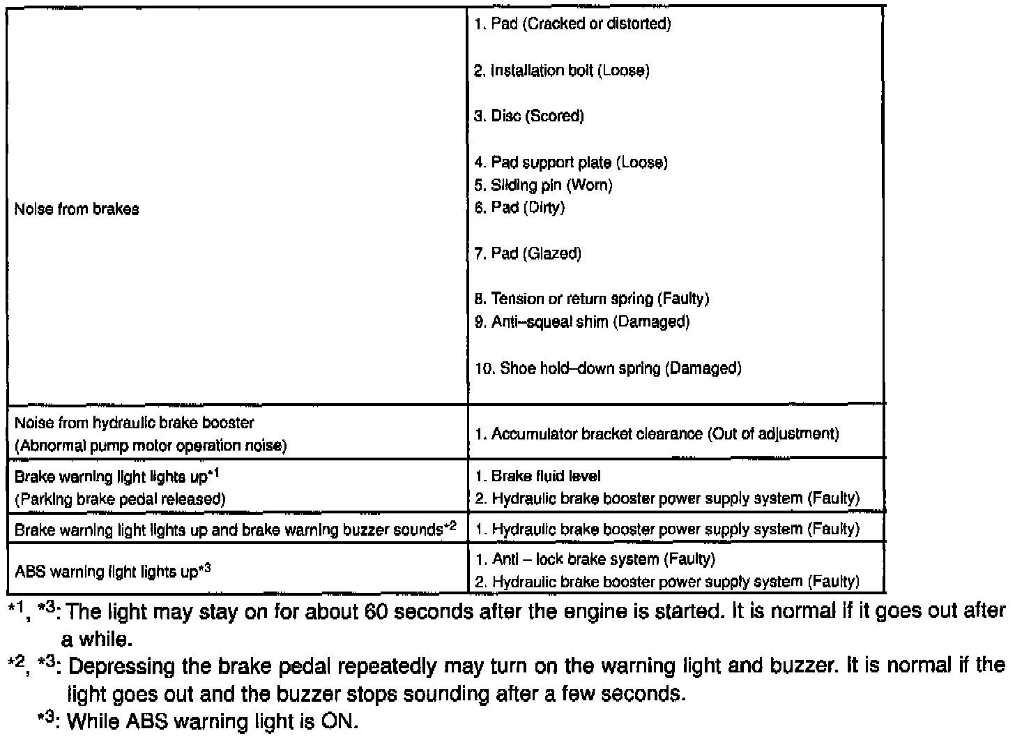 Use the table to help you find the cause of the problem. The numbers indicate the priority of the likely cause of the problem. Check each part in order. If necessary, replace these parts.