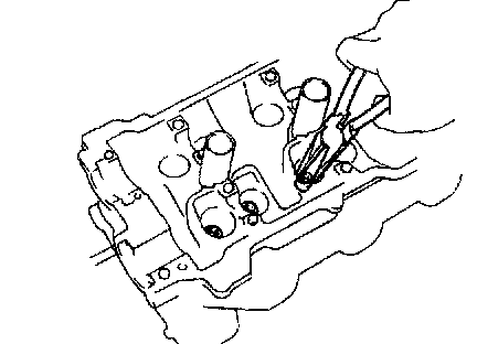 Using a valve guide bushing brush and solvent, clean all the guide bushings.