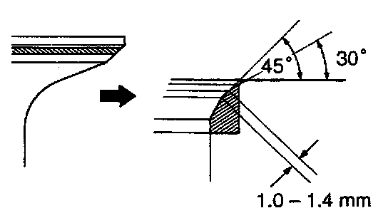 NOTICE: Do not grind off more than minimum.