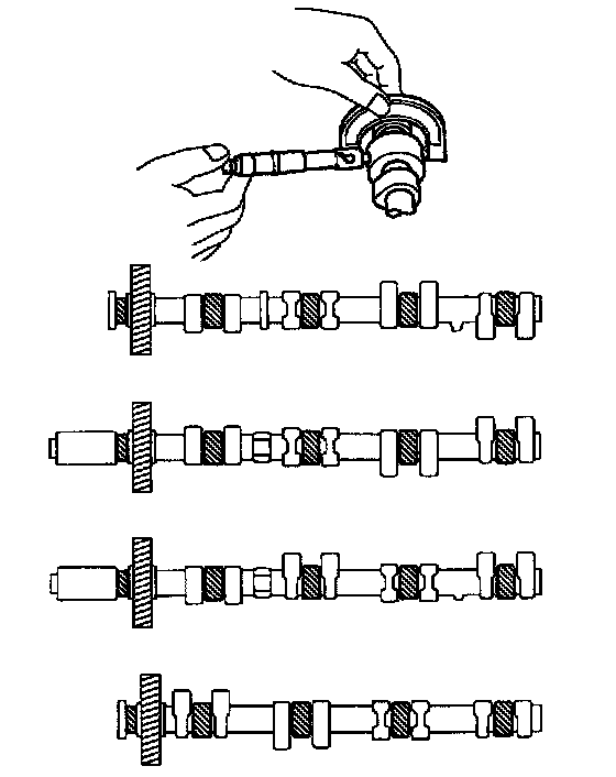 If the backlash is greater then maximum, replace the camshafts.
