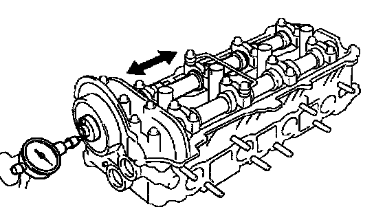 b. Using a dial indicator, measure the thrust clearance while moving the camshaft back and forth.