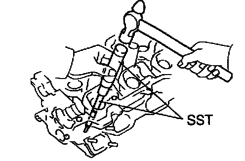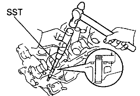 b. Using Special Service Tool (SST) and a hammer, tap out the guide bushing.