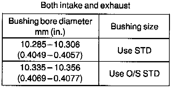 If the bushing bore diameter of the cylinder head is greater than 10.306 mm (0.4057 inch), machine the bushing bore to the following dimension: