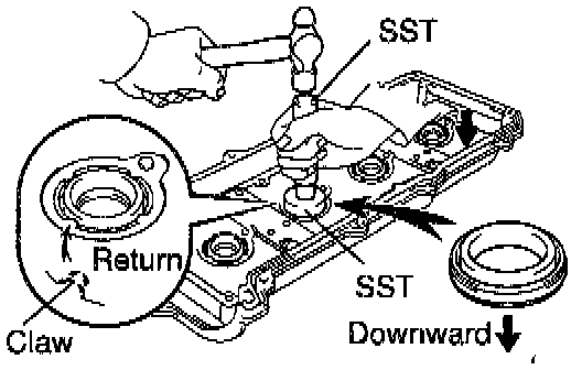 c. Using SST and a hammer, tap in a new gasket until its surface is flush with the upper edge of the cylinder head cover.